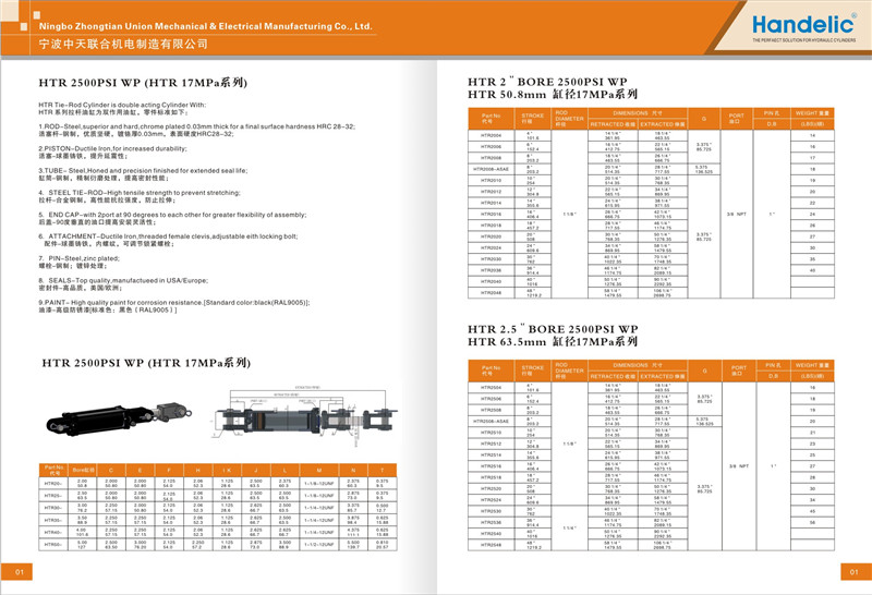 為適應市場對高品質工業(yè)標準油缸的需求,中天公司近期推出了“海德力克”品牌系列標準油缸,產品涉及拉桿油缸和焊接型雙作用油缸。該系列產品結構簡單,客戶可按需求自行選購行程、缸徑、工作壓力等并安裝。“海德力克”系列產品全部采用高品質進口密封件,高品質原料,并且嚴格按照國際標準精工制作。“海德力克”承諾提供多達18個月的質量保證,并提供專業(yè)安裝指導和技術支持,歡迎選購。