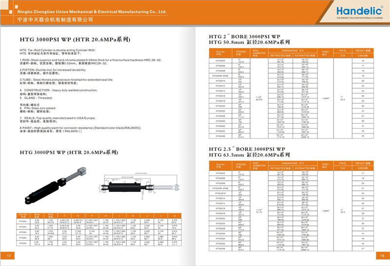 為適應市場對高品質工業(yè)標準油缸的需求,中天公司近期推出了“海德力克”品牌系列標準油缸,產品涉及拉桿油缸和焊接型雙作用油缸。該系列產品結構簡單,客戶可按需求自行選購行程、缸徑、工作壓力等并安裝。“海德力克”系列產品全部采用高品質進口密封件,高品質原料,并且嚴格按照國際標準精工制作。“海德力克”承諾提供多達18個月的質量保證,并提供專業(yè)安裝指導和技術支持,歡迎選購。